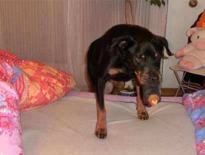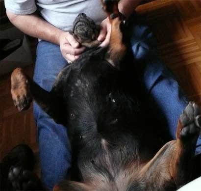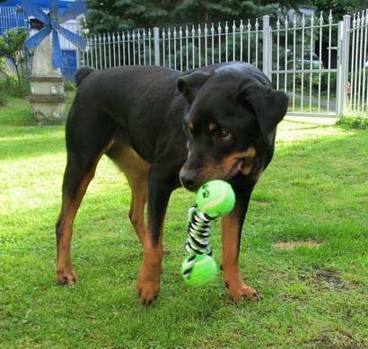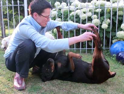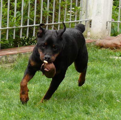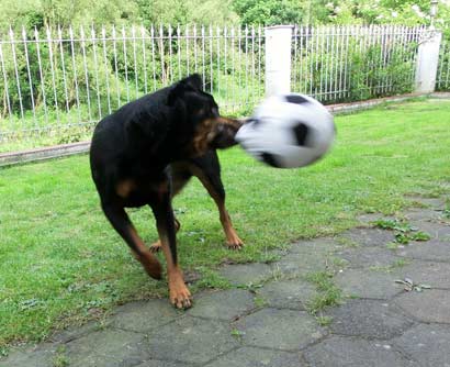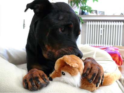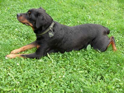 Auch wenn Rita nicht so kann wie sie gern möchte, wir glauben, dass sie sich als vollwertiger Rottweiler fühlt. Immer will sie mitmischen, immer die Nummer 1 sein. Ganz unabhängig von ihrer körperlichen Behinderung.