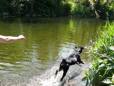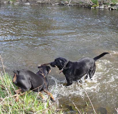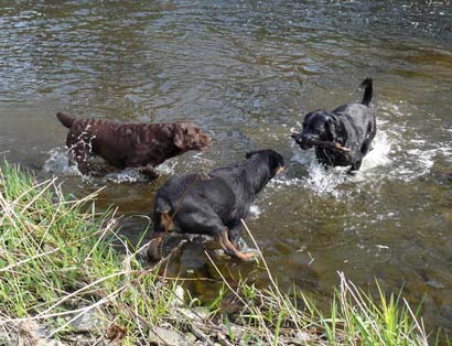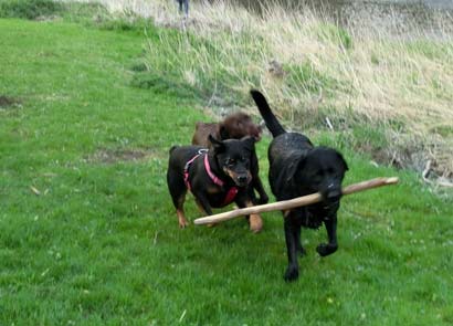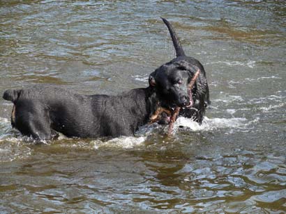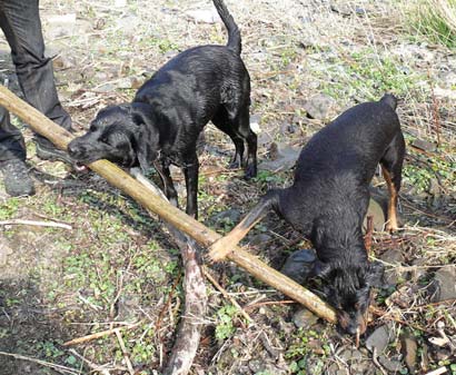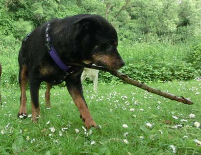 Und einige Fotos vom vergangenen Wochenende - Stöckchenfangen ist eine von Ritas Lieblingsbeschäftigungen, auch wenn sie nur selten bekommt. Aber WENN sie ihn hat, dann hat sie ihn aber auch :-)))