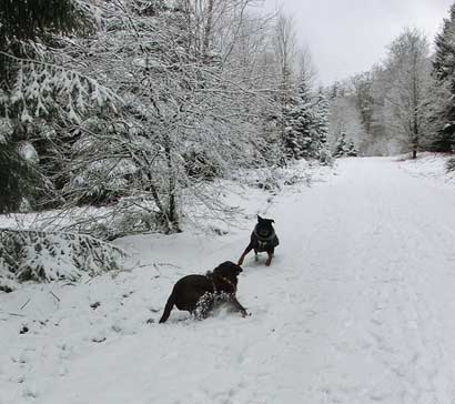 Ja, und dann kam der Winter! Diese Aufnahmen sind am vergangenen Wochenende, also Anfang Februar 2013 entstanden. Das Mäntelchen nimmt Rita sehr gerne an. Sicher auch, weil es immer noch die 3 kahlen Stellen giibt.