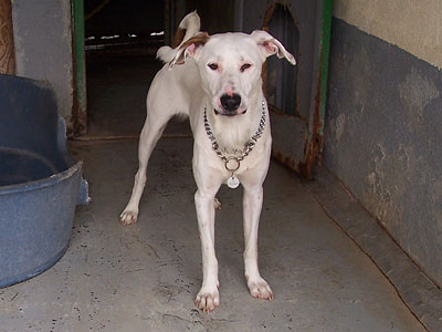 Rüde. Der Podenco/Dalmi-Mix wurde im März