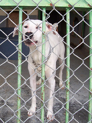 Hunden Angst. Rocky lebte in einer Familie und