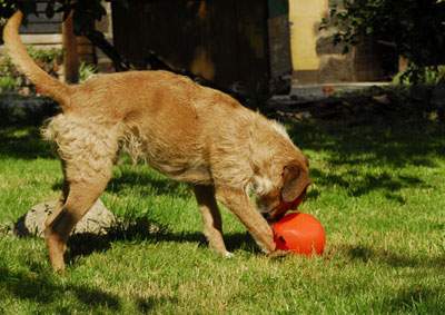 zweiten Ball, der im Hof herumlag (mit dem anderen spielte