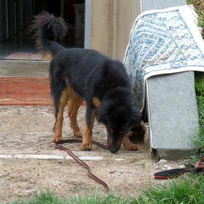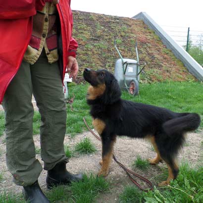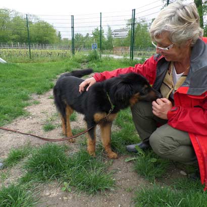 Eine Gassigängerin hatte sich schnell der Hündin angenommen und hat festgestellt, dass die Hündin sicher schon mal in einem Haushalt gelebt haben muß. Die Hündin verschmutzt nicht Ihren Zwinger sondern versucht es zu halten bis man mit Ihr Gassi gehen kann. Wir hoffen inständig, dass die hübsche Hündin die vom Aussehen an einen Miniatur Hoverwart erinnert, nicht lange auf ein Zuhause warten muß!!