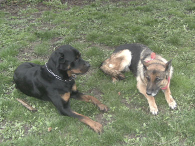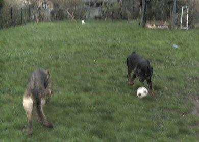 toben mit seinem neuen Freund Caruso(auch ein Rottweiler