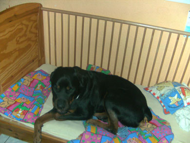 seinen Schlafplatz im Haus, ließen Ihn abliegen