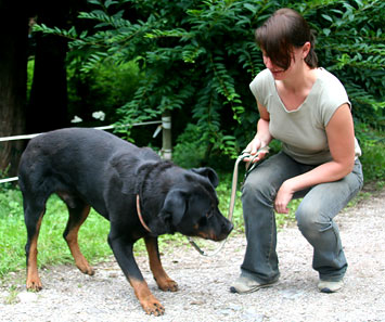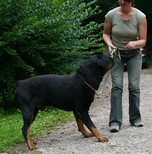 Rottis, marschierte mit uns an anderen Hunden brav