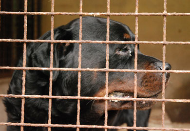 Rottweiler-Pärchen, das sich hier im Tierheim