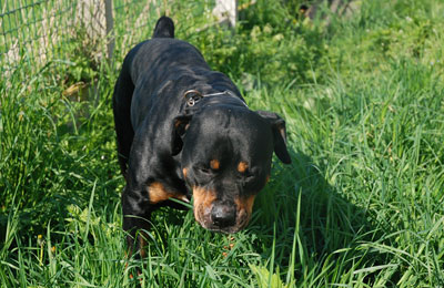 Gras, obwohl der andere Hund ihn permanent ankläfft.