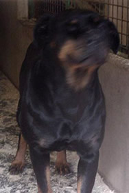 | Verrone ist auf eine Pflegestelle der Rottweiler-Nothilfe