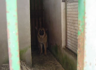 Roxanne in ihrer Box, als sie im Tierheim ankam