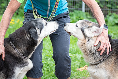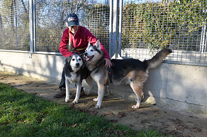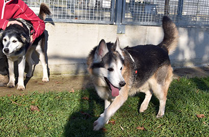Roxy ist sehr anhänglich und geniesst jede Streicheleinheit, die er bekommen kann. Rocky geniesst es mehr mit den anderen Hunden herumzurennen, ausser wenn man Leckerlis hat.