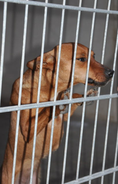 Ruby versteht die Welt nicht mehr und klammert sich förmlich an ihre Gassigeher und möchte diese nicht gehen lassen. Ruby ist mit Artgenossen verträglich und wir hoffen, dass die junge Hündin schnell ein schönes Zuhause findet. (sm)