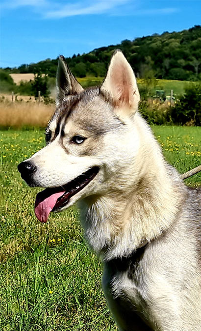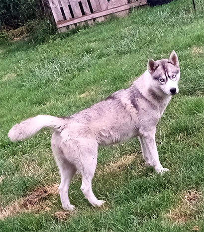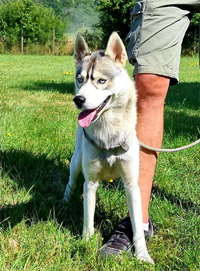 Die Huskyhündin Ruby wuchs in einer kinderreichen Familie, zusammen mit einem Chihuahua und einer Amerikan- Bulldog Hündin, auf.