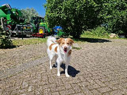 Mit seiner Familie wohnt er in ländlicher Gegend, sind seine Besitzer zuhause, verbringt er die Zeit im Garten.