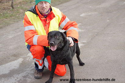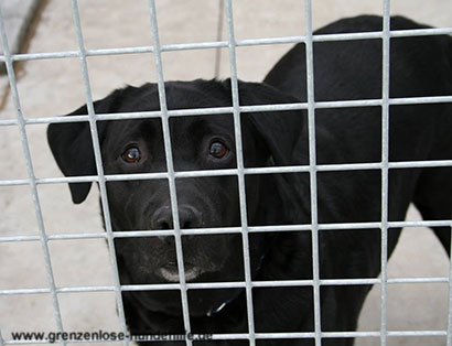 Die schwarze Labrador Hündin Saphira mußte wegen Krankheit ihres Besitzers ins Tierheim.