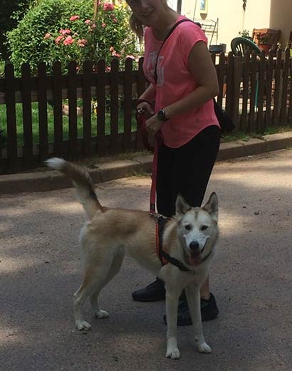 Die junge Huskyhündin Sawyer ist 2016 geboren und wurde wegen Überforderung im Tierheim abgegeben.