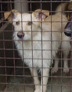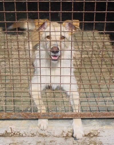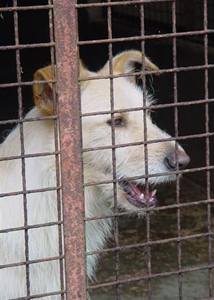 ist schäferhundgroß und lebt zusammen mit Gecko in einem Zwinger.