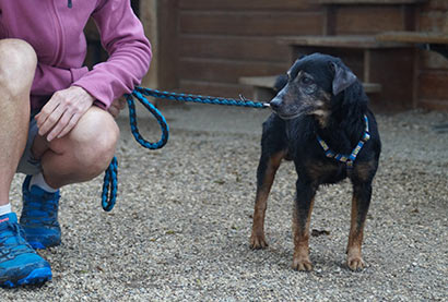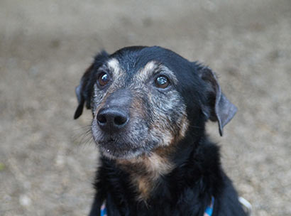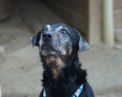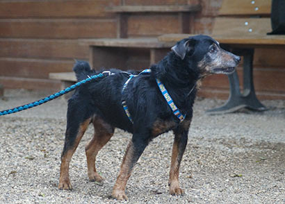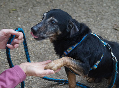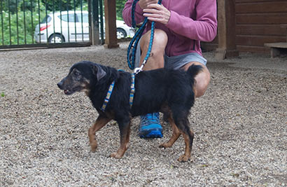 Als ich den Opa im Freilauf besuchte, hat er mich freundlich begrüsst, er lässt sich gerne streicheln und macht für ein Leckerli brav Sitz oder gibt Pfötchen. Trotz seines Alters ist er immer noch fit und geniesst die Spaziergänge.