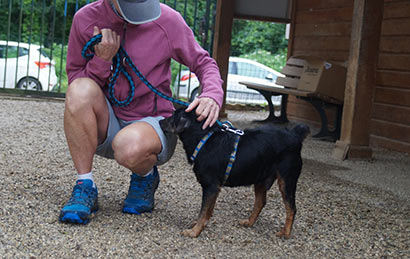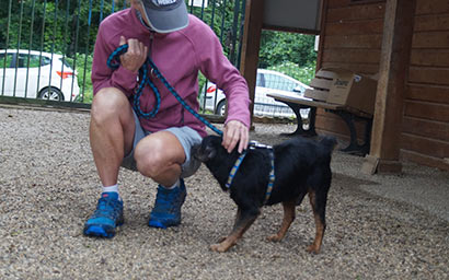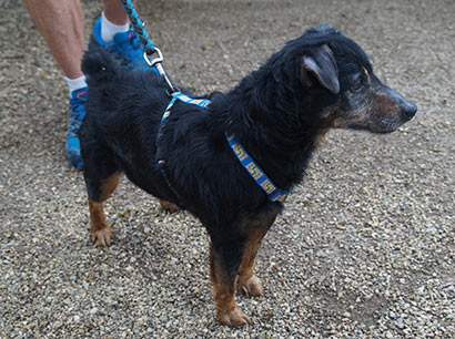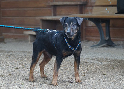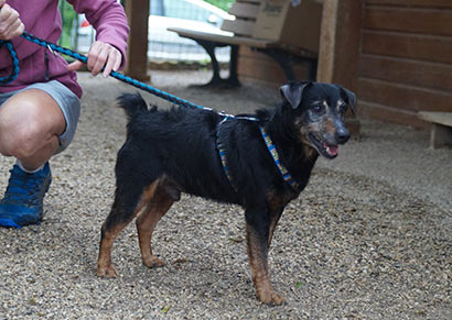 Am liebsten würden wir Schtroumpf als Einzelhund vermitteln, mit Katzen hat er keine Probleme.