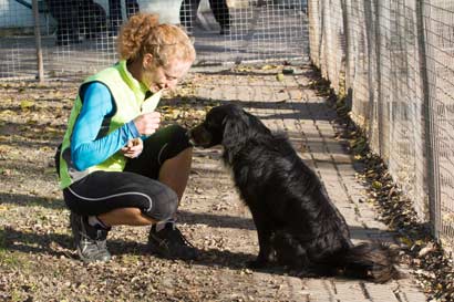 Als ich mit Ihm in den Freilauf bin kommt er langsam und vorsichtig zu mir. Der arme Kerl hatte sicher keinen tollen Start ins Leben. Er zuckt bei einigen Bewegungen zusammen und dabei sehen wir die Angst in seinen Augen. Er nimmt ganz fein die Leckerlis.Dabei darf ich Scouby vorsichtig streicheln. Er zittert und ist richtig nervös. Ich spüre wie sein Herzschlag schnell klopft. Nach einer Weile vertraut er mir etwas. Als Belohnung für meine Geduld bekomme ich kleine Küßchen von Scouby !!!