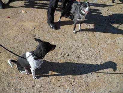 Die beiden Hunde sind gelassen und schnüffelnd miteinander gelaufen. Unterwegs haben wir dann noch einen anderen Hund getroffen dies war auch kein Problem.