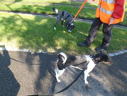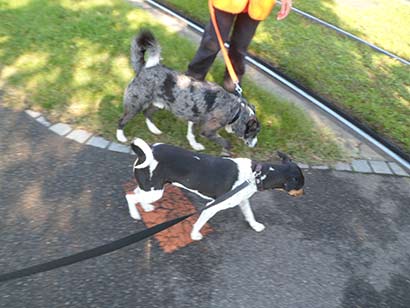 Heute morgen haben Azur und Shanti das Tierheim zufällig gleichzeitig verlassen um Gassi zu gehen. Diese Gelegenheit haben wir genutzt um gemeinsam zu gehen.