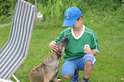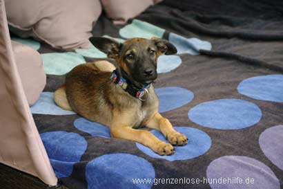Sharie ist ein wunderbares Hundekind, sehr menschenbezogen und verschmust. Sie lernt in Windeseile und mit Begeisterung. Nachts ist sie sogar schon stubenrein, hält gut sechs Stunden durch. Sie freut sich über den vorhandenen, kleinen Rüden, der immer bereit ist mit ihr zu spielen und zu toben. Mit ihm zusammen erkundet sie die Welt. An der Leine ist sie aufgeweckt und findet alles interessant.