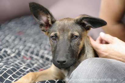 Ihre Mutter ist ein Malinois/Schäferhund-Mix. Der Vater unbekannt.