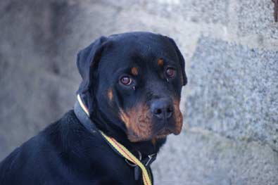Shyna ist eine bildschöne, liebe Rottweilerhündin. Ihre anfängliche Scheu hatte sie bald abgelegt und zum Vorschein kam eine offene, sehr verspielte und neugierige Hündin. Sie ist freundlich gegenüber Menschen und Hunden. Sie versteht sich sowohl mit Rüden, als auch mit anderen Weibchen und animiert jeden Artgenossen zum Spielen. Sie lernt sehr schnell und gerne, was ihr auch in der Hundeschule schon viel Lob eingebracht hat. Die Grundbegriffe kann sie mittlerweile schon sehr gut. Außerdem liebt sie Wasser überalles. Selbst der kalte Winter schreckt sie nicht ab, ein paar Runden zu schwimmen, wenn sie die Möglichkeit dazu hat. Sie liebt es danach abgetrocknet zu werden, was meist in einem ausgelassenem, aber in keinster Weise ruppigen Spiel endet. Sie zeigt es wenn sie Lust hat zu schmusen oder zu spielen und zieht sich zurück, wenn sie ihre Ruhe haben will. Wie alle Rottweiler ist sie sehr aufmerksam und besitzt sie einen Wachinstinkt. Sie bellt jedoch nur dann wenn es angebracht ist und ist sonst eine sehr ruhige Mitbewohnerin.