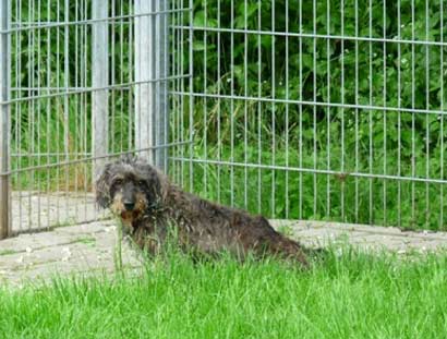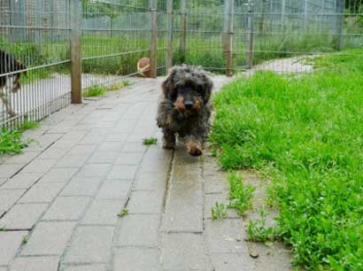 So erging es auch Snoopy, die bildhübsche Rauhaardackel-Dame mußte das kuschelige Körbchen gegen den harten Betonboden im Tierheim tauschen. Hoffentlich finden sich bald Dackelliebhaber, welche Snoopy noch viele schöne Jahre ermöglichen. |