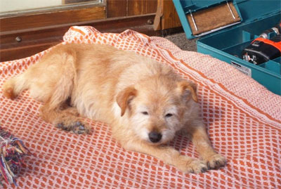 Snoopy ist ein kleiner, heller Mischlingsrüde,