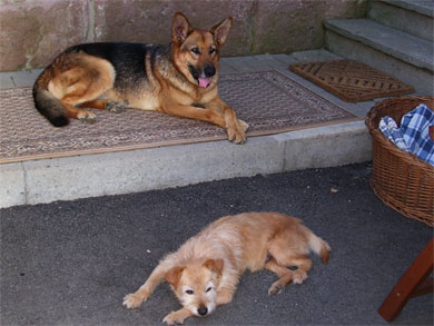 Snoopy und eine rumänische Schäferhündin,
