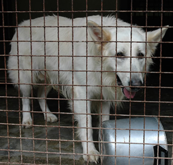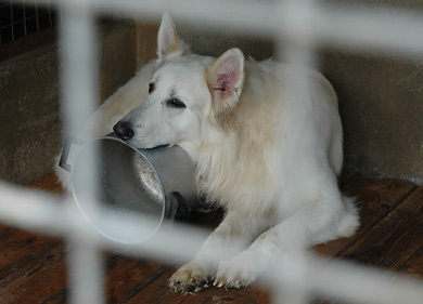 Zwinger. Er hat zwar gezogen an der Leine, aber