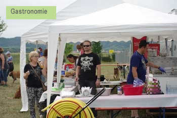 photos de groupe avec les 2 et 4 pattes- marché aux puces - tombola- café- gâteaux, buffet de salades- pizza - frites- différents stands - opération foulards avec les anciens pensionnaires des refuges.
