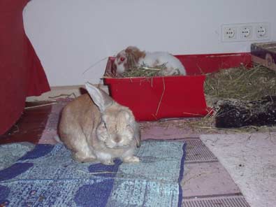 noch alleine, wenigstens hat er aber im "Hasenzimmer"