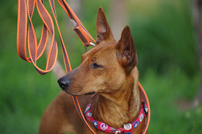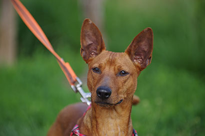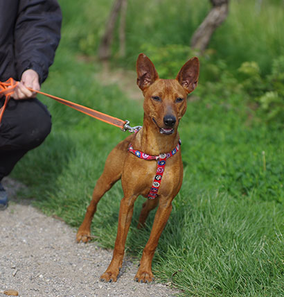 Der braune Pinscher Rüde Spirou wurde zusammen mit seinem Bruder Fantasio wegen finanzieller Probleme im Tierheim abgegeben.