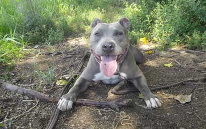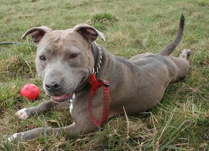 Stella ist eher klein für ihre Rasse (AMSTAFF). Sie verfügt über Stammbaum und hat eine sehr spezielle Farbe (selten).