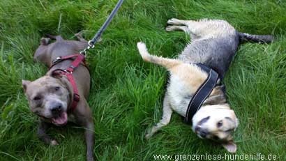 Du hast Deine Mitinsassen kennengelernt und auch tolle Hundefreunde gefunden. Jedesmal, wenn wir Spazieren gehen, üben wir die Verträglichkeit mit den anderen Vierbeinern und deren Gassigänger! Dank ihnen hast du grosse Fortschritte gemacht. Es ist nicht jeden Tag einfach, aber du hast gelernt mit ein paar Hunden zu spielen. Du bleibst ruhig und gelassen mit deinen, ein wenig stürmischen, Spielkamaraden, wie z B Cujo oder Ellie. Du liebst es, dich mit meiner Hündin Jaimie im Gras zu wälzen.