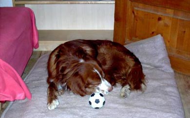 Sultan ist ein sehr ausdauernder Ballspieler,