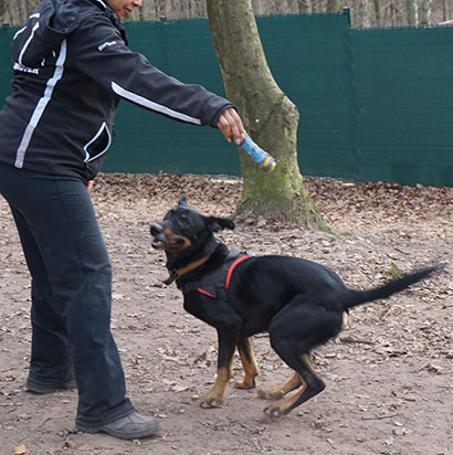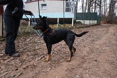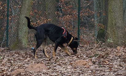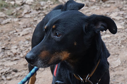 Die letzten Besitzer sagten er könne nicht alleine bleiben. Sultan ist sehr anhänglich und er läuft ordentlich an der Leine..