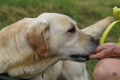 Sunny ist ein typischer Labbi, er lässt sich gerne streicheln und liebt Leckerlis.