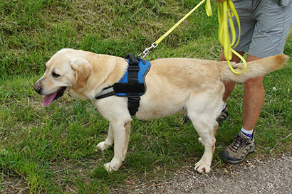 Spaziergänge mag er sehr und er benimmt sich an der Leine sehr anständig.