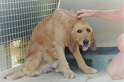 Nähert man sich alleine seinem Zwinger kommt der arme Junge neugierig ans Gitter, sobald jedoch mehrere Leute dabei sind, zieht er sich in eine Ecke zurück.