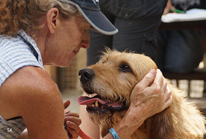 Als Swan sah, dass ich mit Leine und Geschirr zu ihm in den Zwinger kam, lief er schwanzwedelnd auf mich zu.