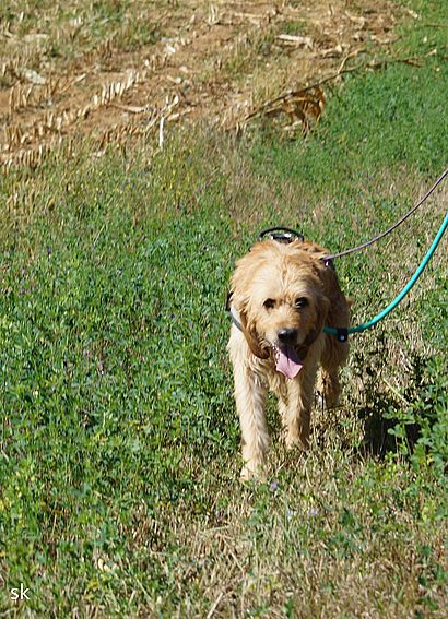 Beim Spazieren im Wald lief Swan fast problemlos, er fühlte sich sicher. Als wir ber das Feld zurückkamen, wollte er nicht weiterlaufen, nach gutem Zureden, lief er dann doch weiter.