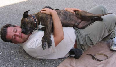 Meine Hunde beschnuppert er und macht Speilaufforderungen..