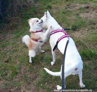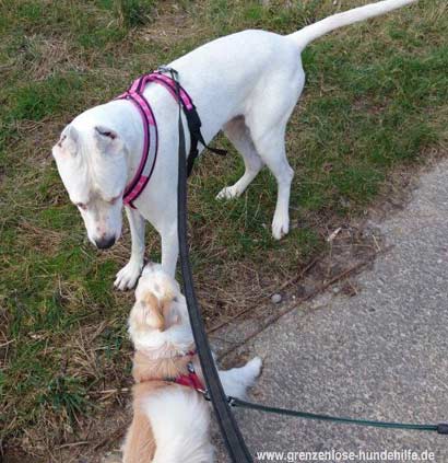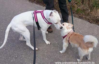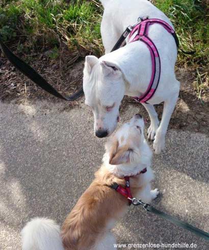 Tara drohte den beiden Hündinnen heftig, dennoch ließ Sie sich aber, zumindest von Ihrer Stamm-Gassigängerin, schnell korrigieren.
