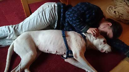 Tara ist für ihr Alter sehr fit, eine Blutuntersuchung ergab keine Auffälligkeiten und sie geht gerne einmal am Tag eine größere Runde von rund einer Stunde spazieren.