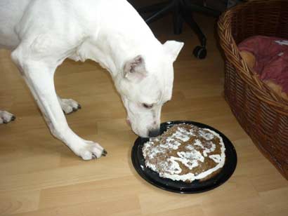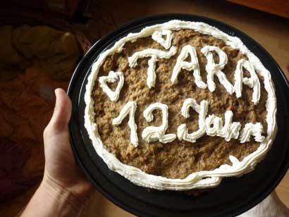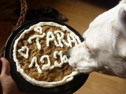 Tara feierte auf Ihrer tollen Pflegestelle Ihren 12 ten Geburtstag und bekam auch einen eigenen Geburtstagskuchen :-)) |