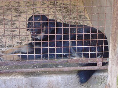 Gaston in ihrem Zwinger, denn Struppi ist